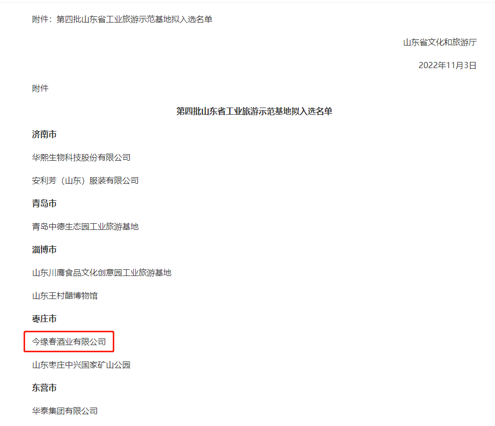 今緣春生態(tài)釀酒園是以滕州酒文化、生態(tài)環(huán)保、工業(yè)旅游、國(guó)內(nèi)先進(jìn)工藝技術(shù)以及現(xiàn)代化的企業(yè)形象為一體的生態(tài)工業(yè)園。近年來(lái),今緣春酒業(yè)通過(guò)舉辦封壇雅宴 、善國(guó)禮宴、開(kāi)釀節(jié)等豐富多彩的活動(dòng)與消費(fèi)者互動(dòng),形成特色鮮明的自創(chuàng)節(jié)日,并通過(guò)多年的經(jīng)營(yíng),成為滕州本地特色鮮明、主題明確的節(jié)日旅游、購(gòu)酒、體驗(yàn)的名片。